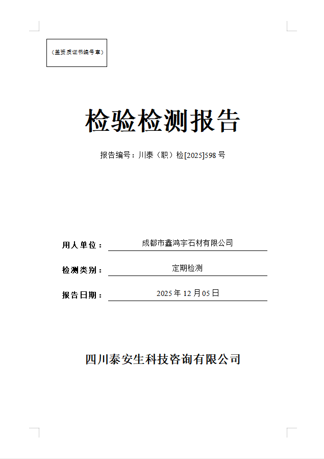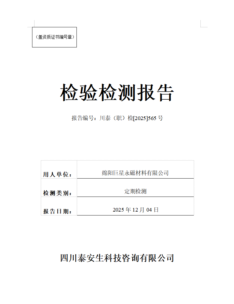 瀘縣恒維混凝土工程有限公司—川泰(職)檢[2025]496號(hào)