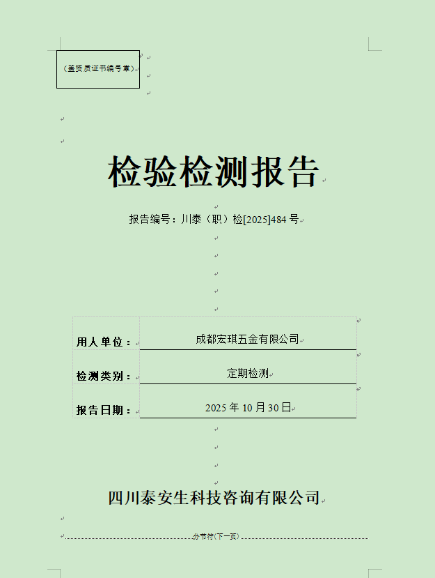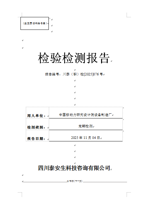 成都燃?xì)饧瘓F(tuán)股份有限公司—西區(qū)門(mén)站—川泰(職)檢[2025]270號(hào)