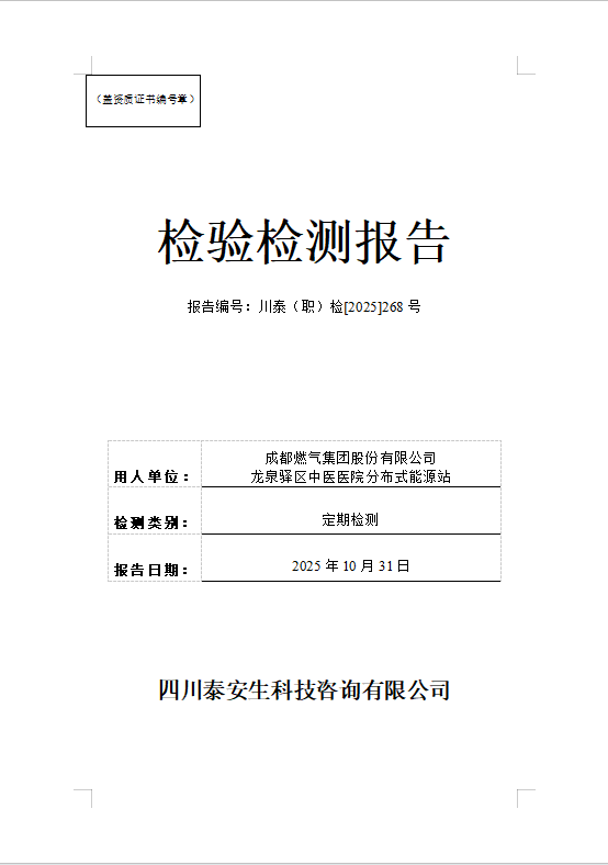 成都燃?xì)饧瘓F(tuán)股份有限公司—龍泉驛區(qū)中醫(yī)醫(yī)院分布式能源站—川泰(職)檢[2025]268號(hào)