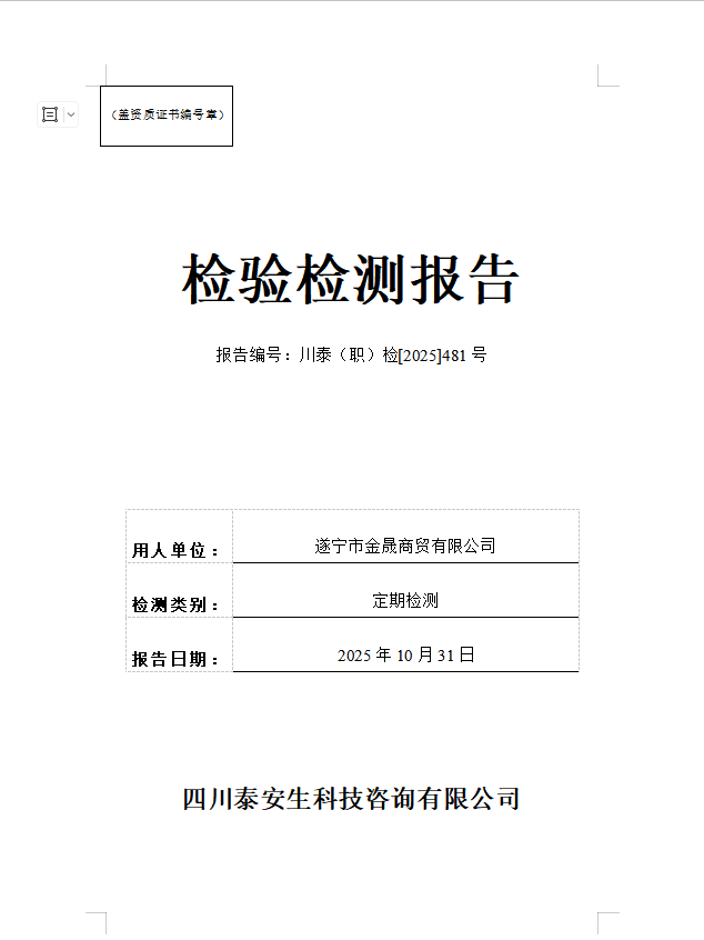 遂寧市金晟商貿(mào)有限公司—川泰(職)檢[2025]481號(hào)