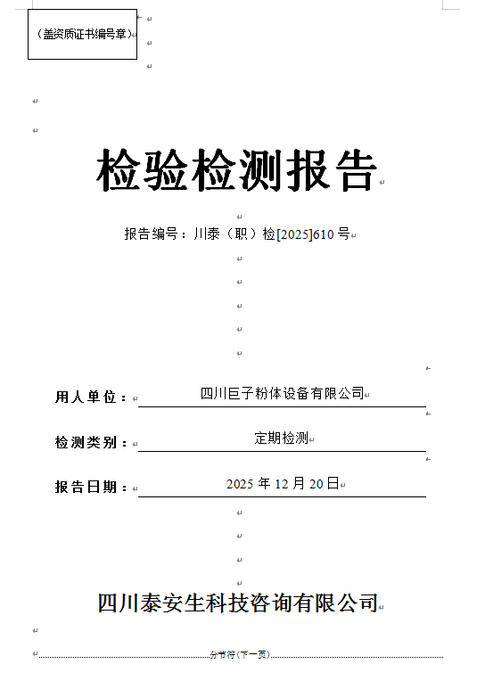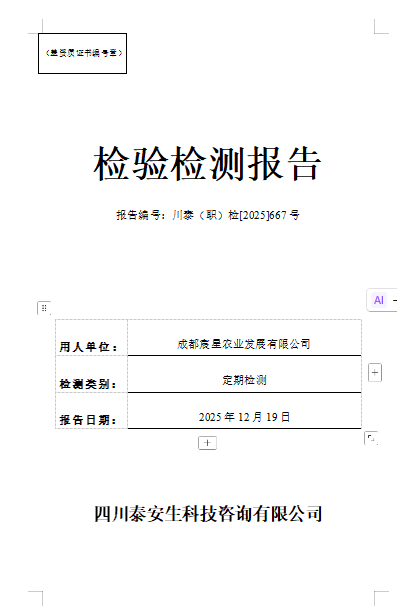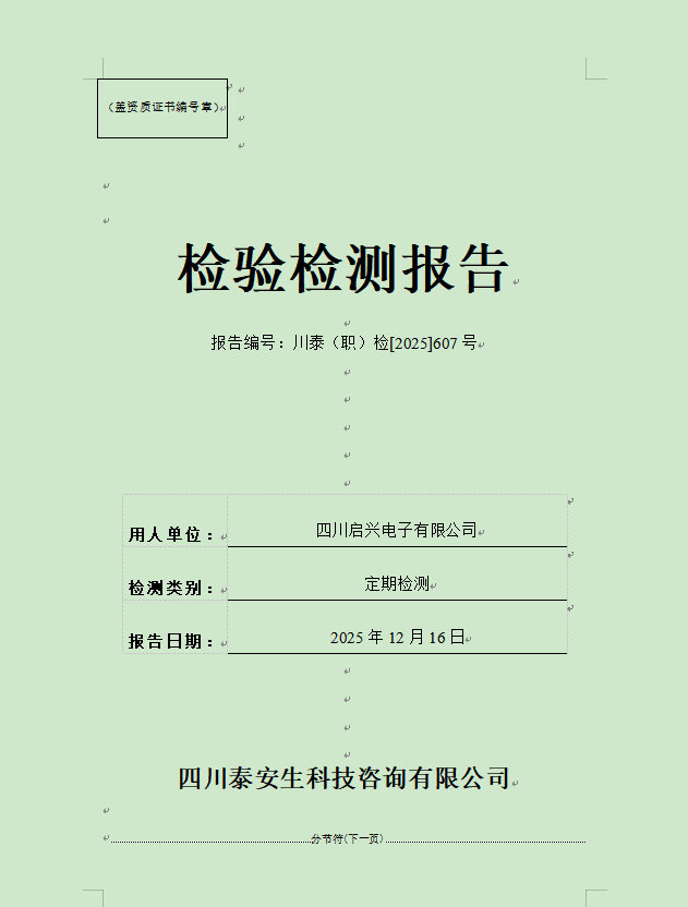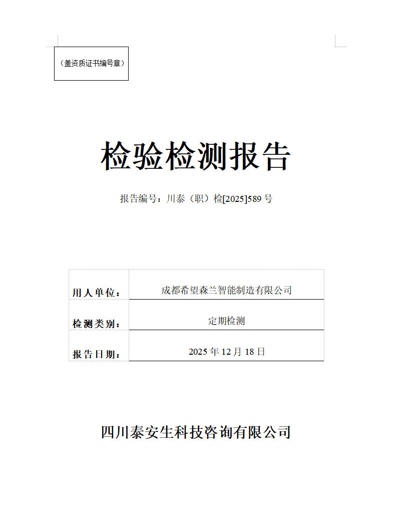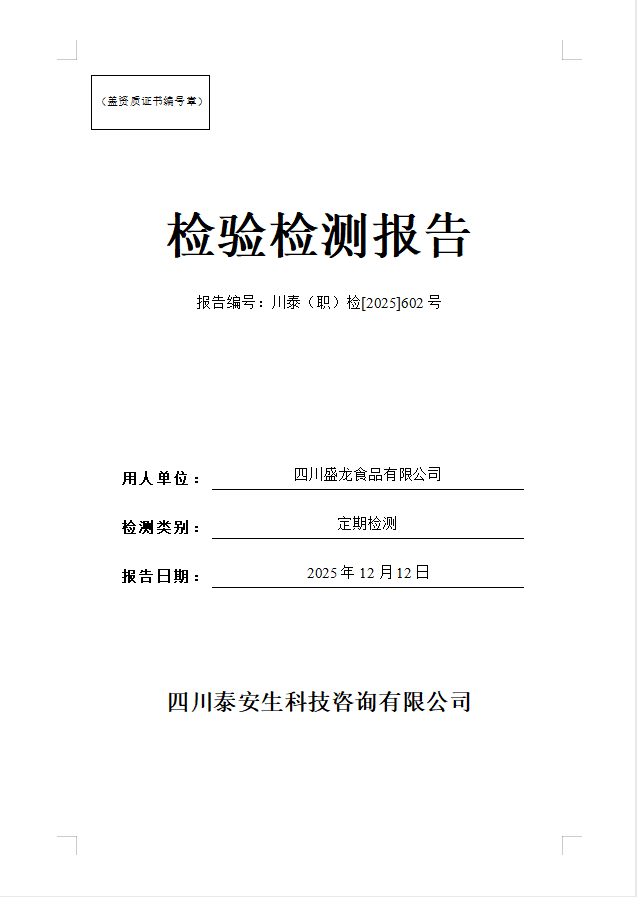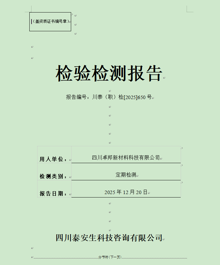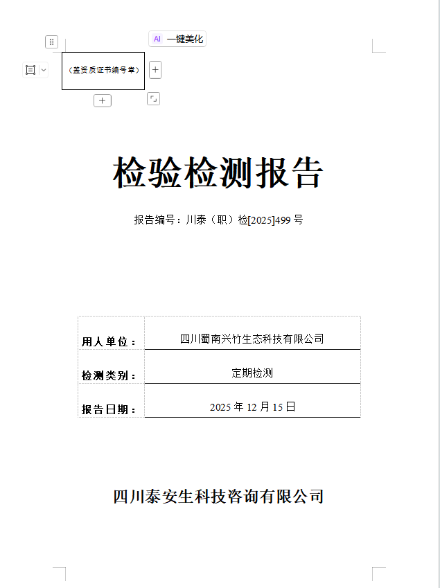 四川蜀南興竹生態(tài)科技有限公司—川泰(職)檢[2025]499號