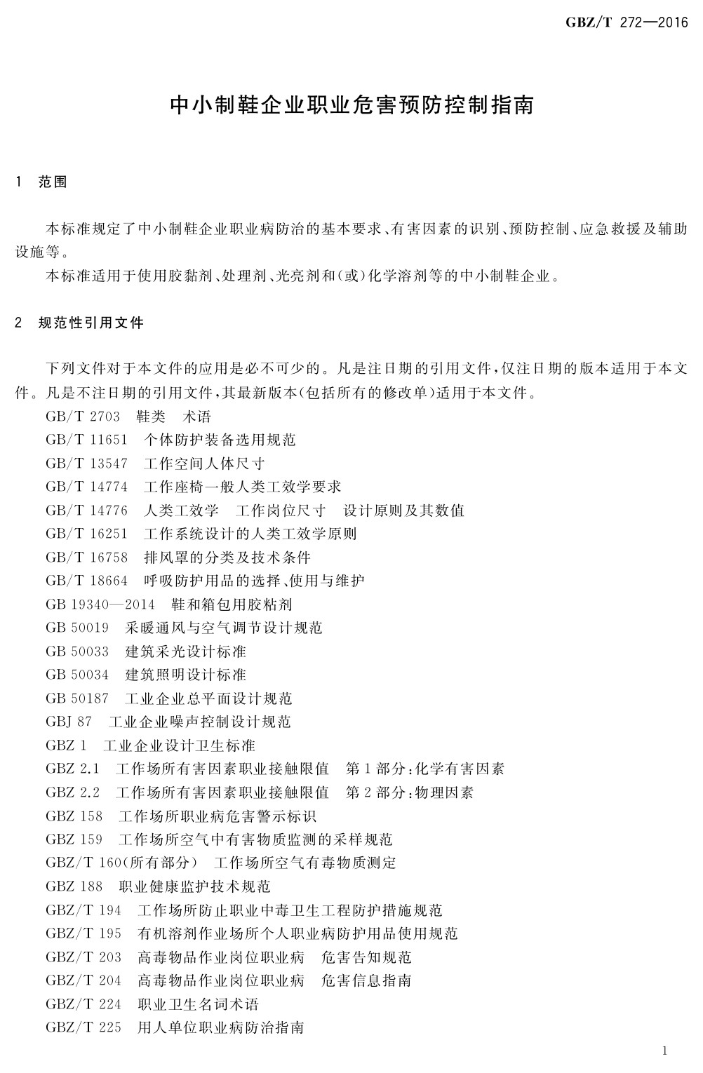 GBZT 272-2016 中小制鞋企業(yè)職業(yè)危害預(yù)防控制指南